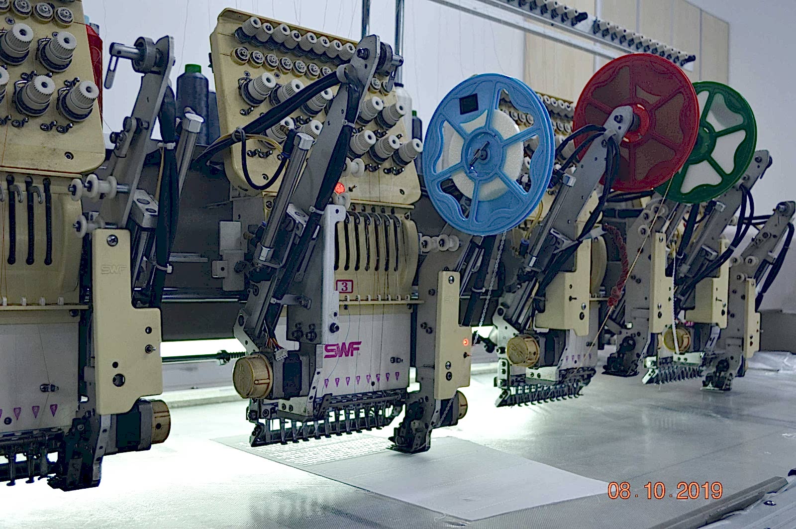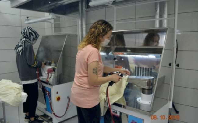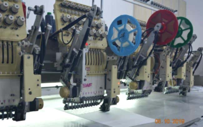 The embroidery department receives the cut part of the garment, style and the embroidery details in the form of the hard copy format. The design is scanned and digitized (punching) using the Embroidery CAD software and saved as the machines format. After loading the digitized design to the samoling machine, a sample is done before going into production. After confirmation of the sample in terms of the positioning, thread colors, quality and backing materials, the bulk production starts. At Akcakaya Textile, there are 5 embroidery machines, 2 of them are with double sequin apparatus and 1 applique laser cutting system.