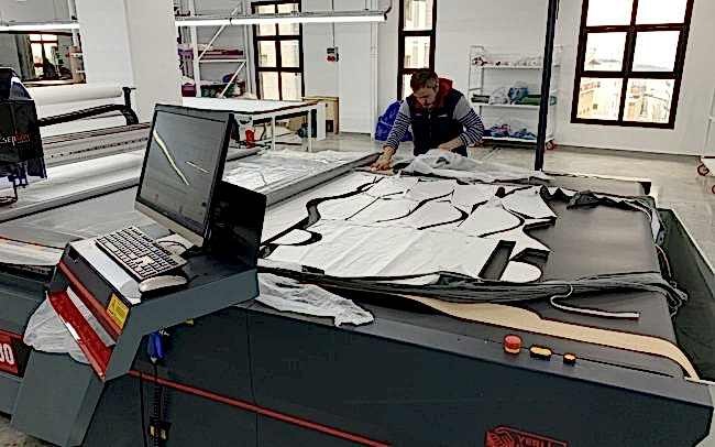 Automatic Cutting: The lay is cut automatically via our latest technology automatic Cutter system. The system uses the pre-loaded nested patterns which are prepared via Automated Nesting Software and is 5 times faster than manual cutting.