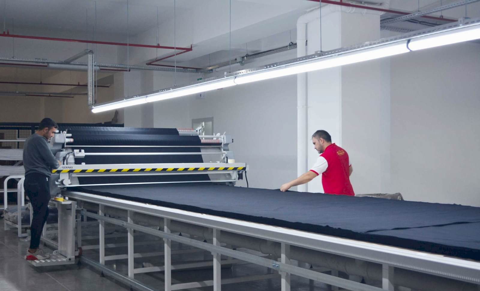 Jacquard, stripes and checks cannot be spread with the spreading machine due to requirements of matching so they are spread manually.